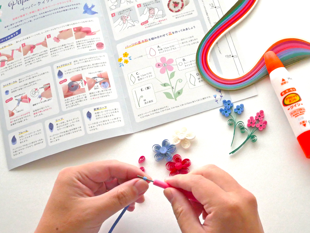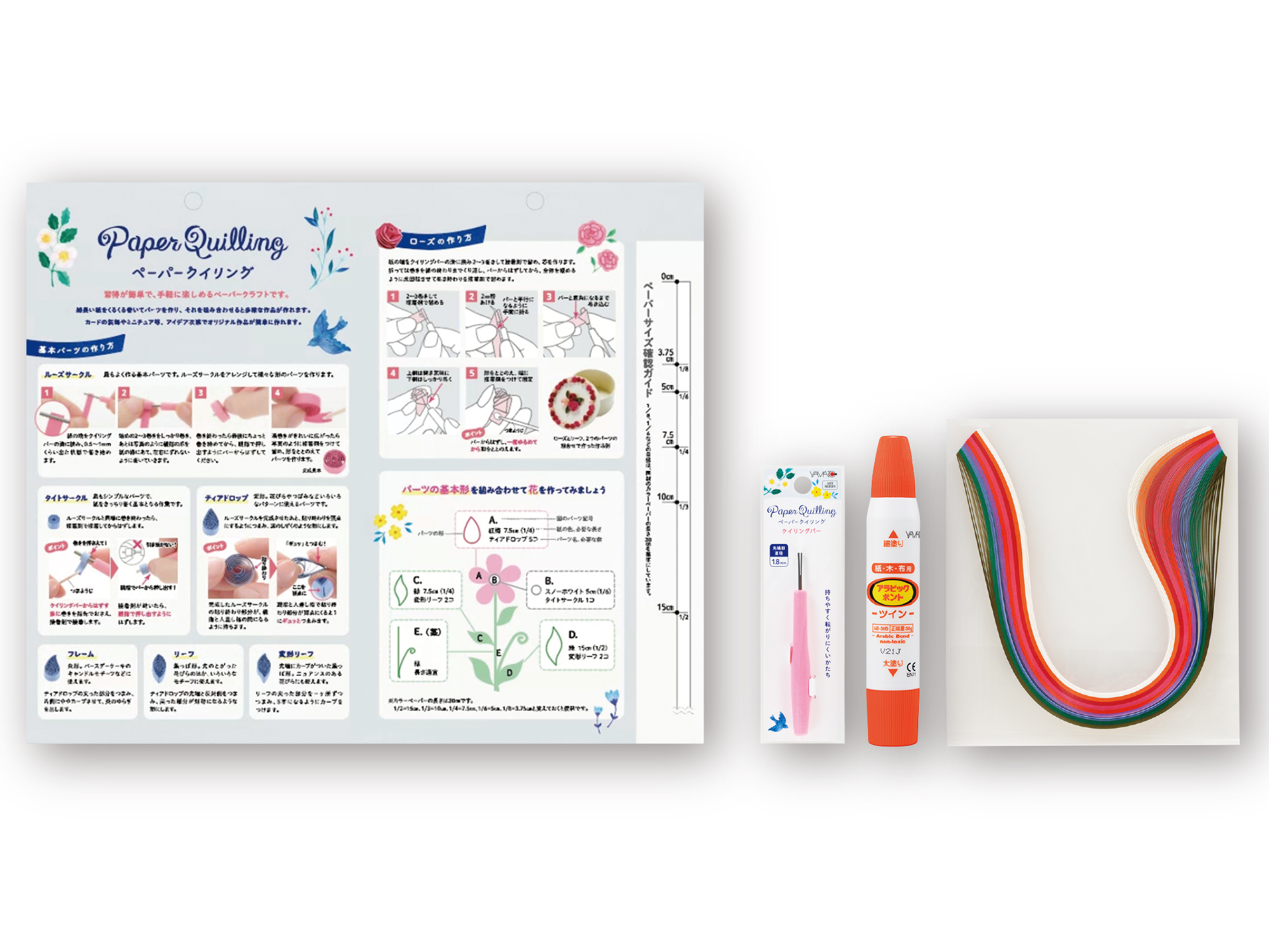 Set contents : Instruction Leaflet, Slotted Paper Quilling Bar (QB-1), Paper Quilling Color Paper 3mm width , 30cm length (QP-3A 9 colors, 90 strips in total), Arabic Bond (White Craft Glue AB-36B)
