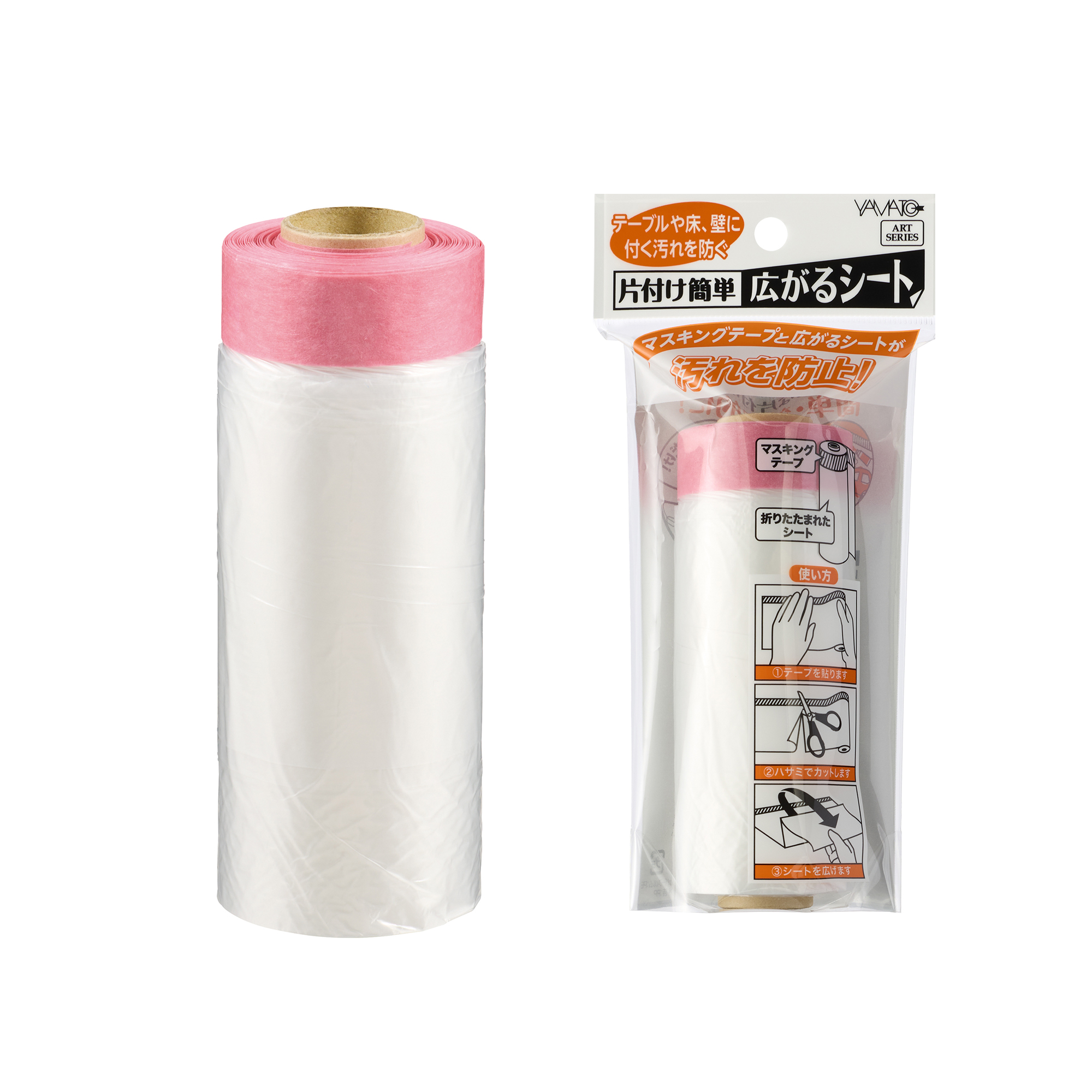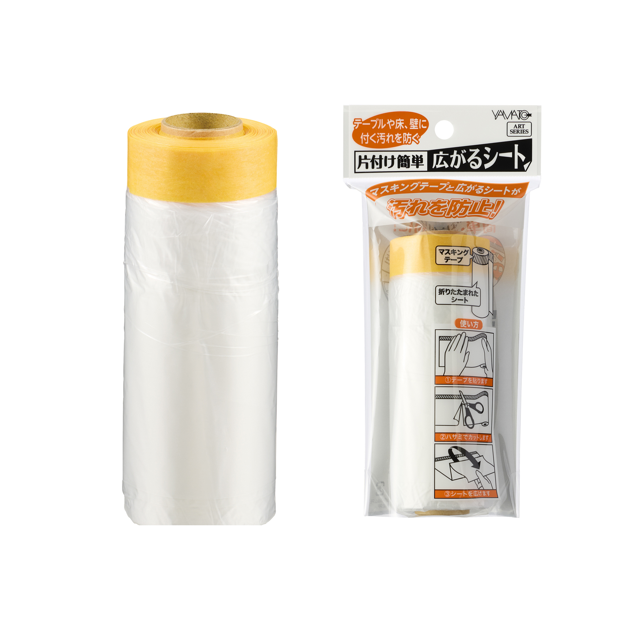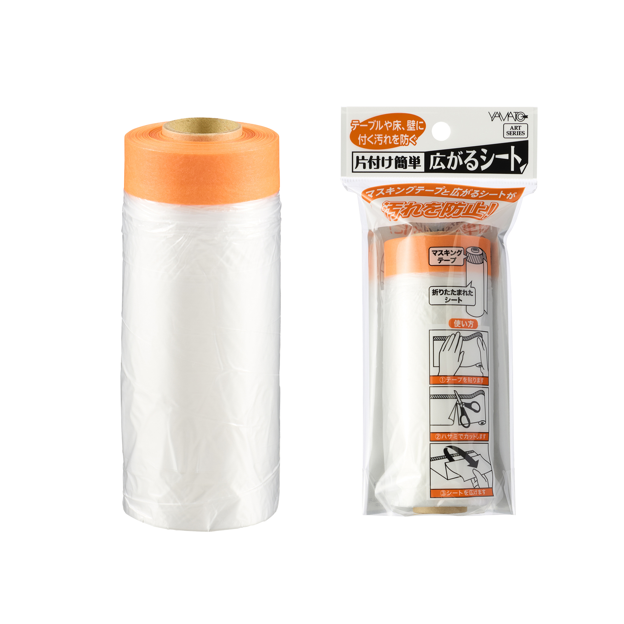 The “Easy-Clean-Up Expandable Cover Sheet” is a dedicated stain-proofing sheet combining masking tape and a folded protective sheet.