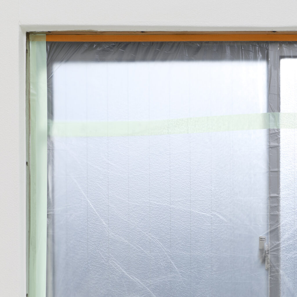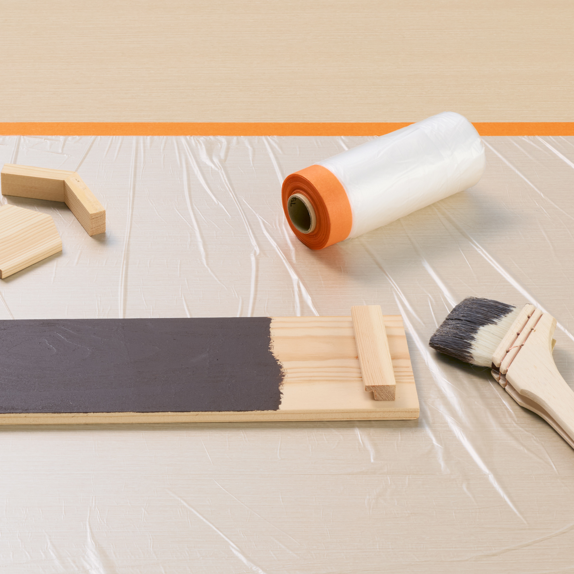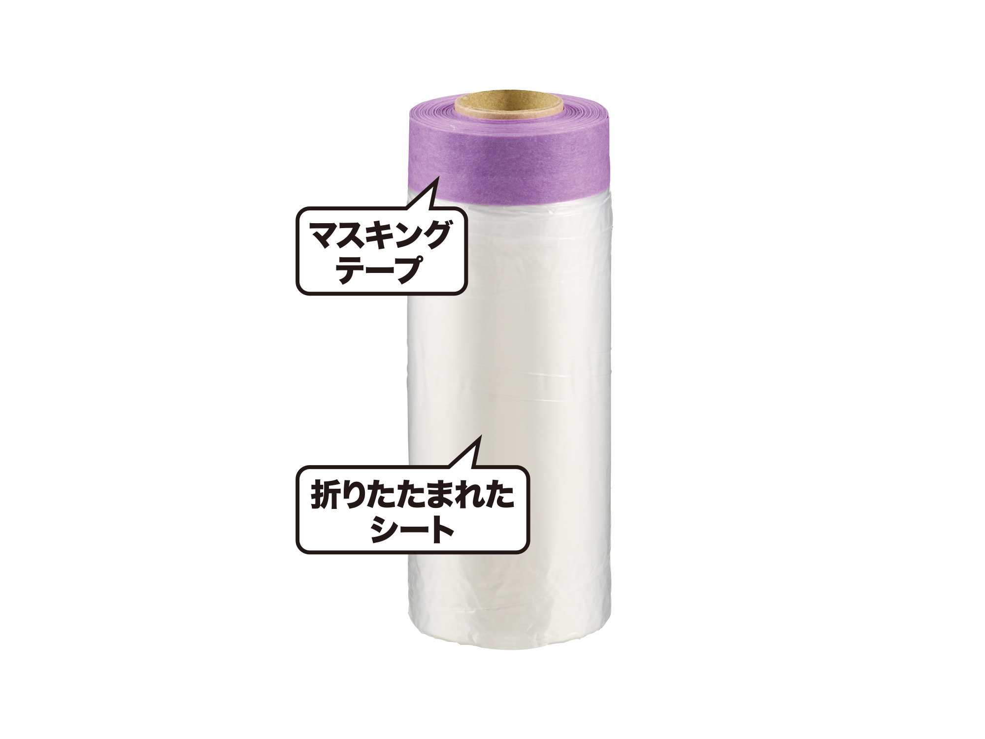 The “Easy-Clean-Up Expandable Cover Sheet” is a dedicated stain-proofing sheet combining masking tape and a folded protective sheet.