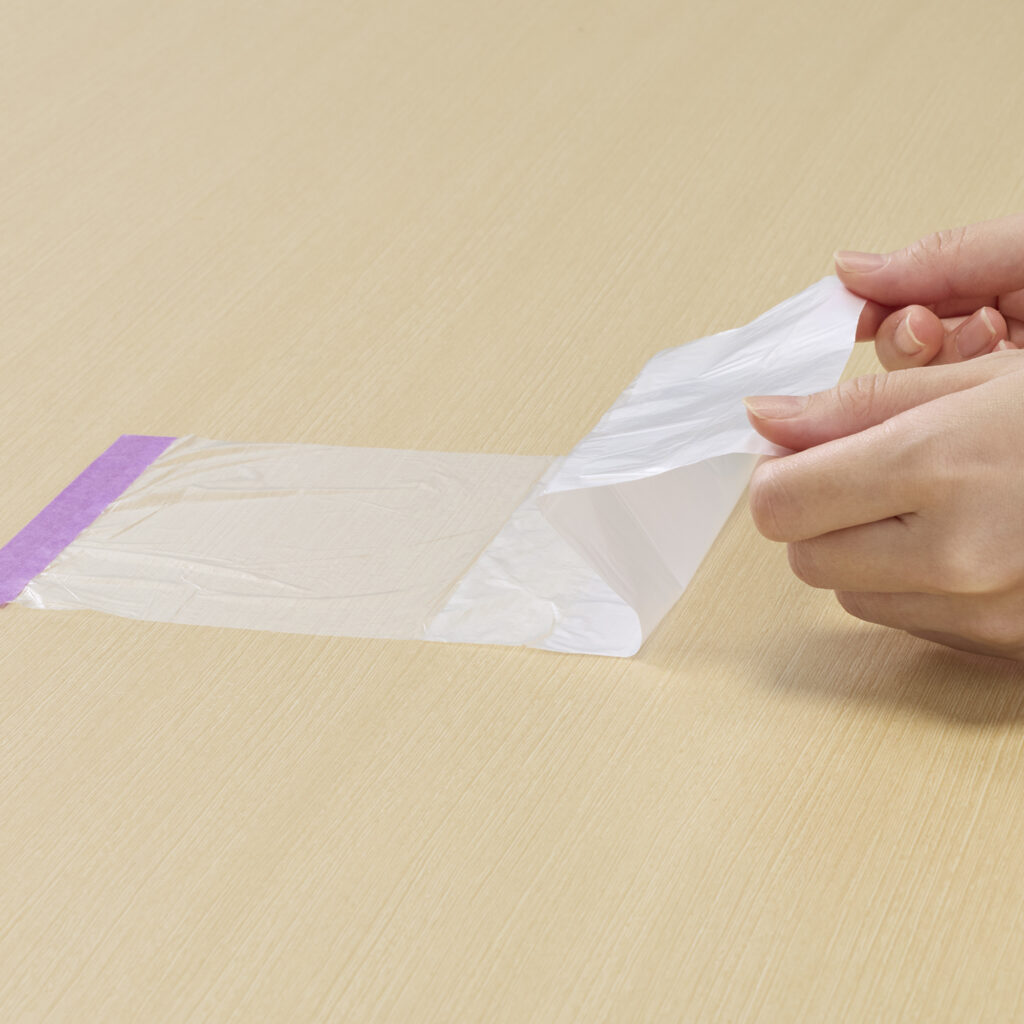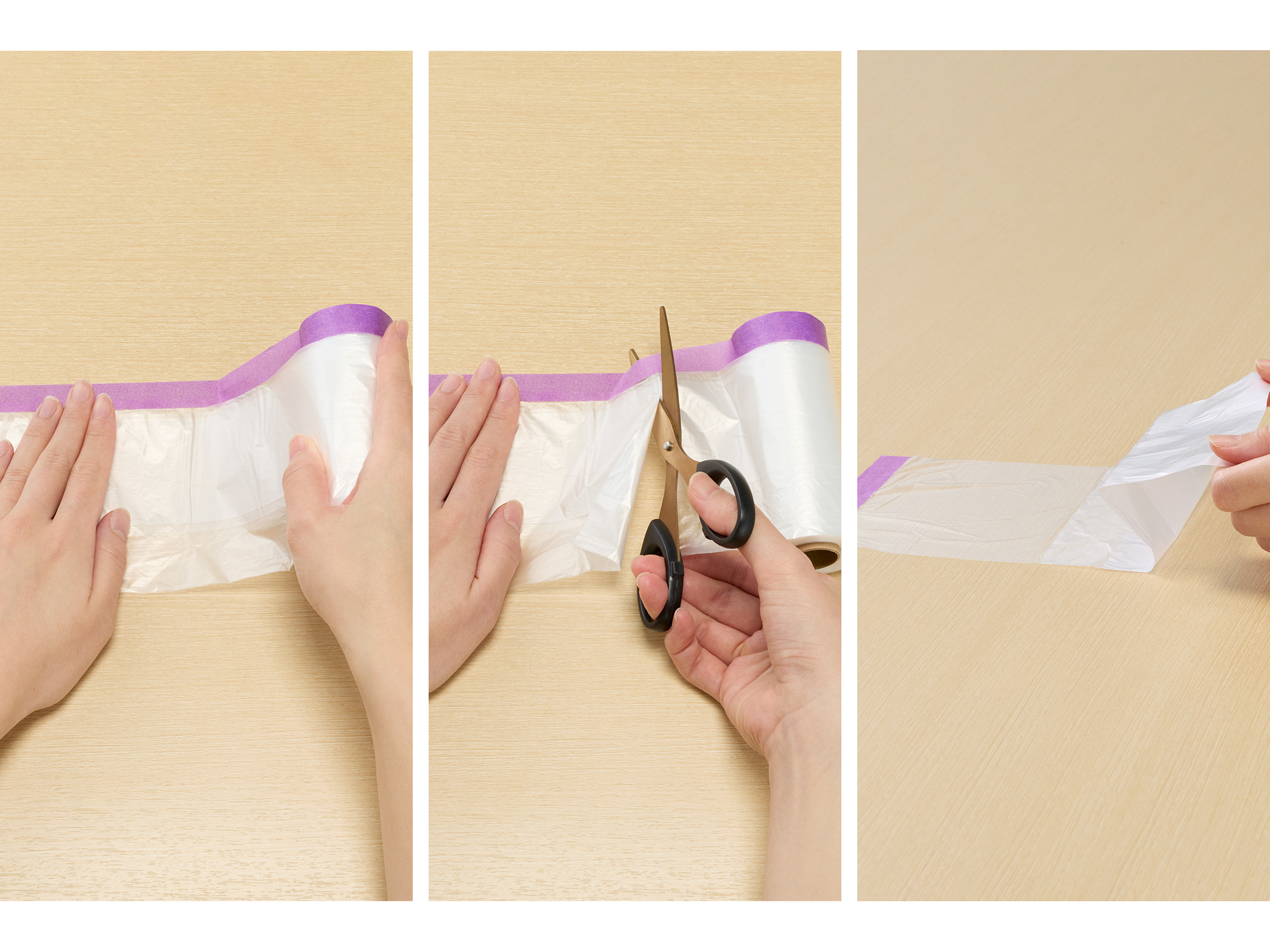 Easy to use Easy-Clean-Up Expandable Cover Sheet Usage Steps From left: “Apply”→“Cut”→ “Expand the sheet”